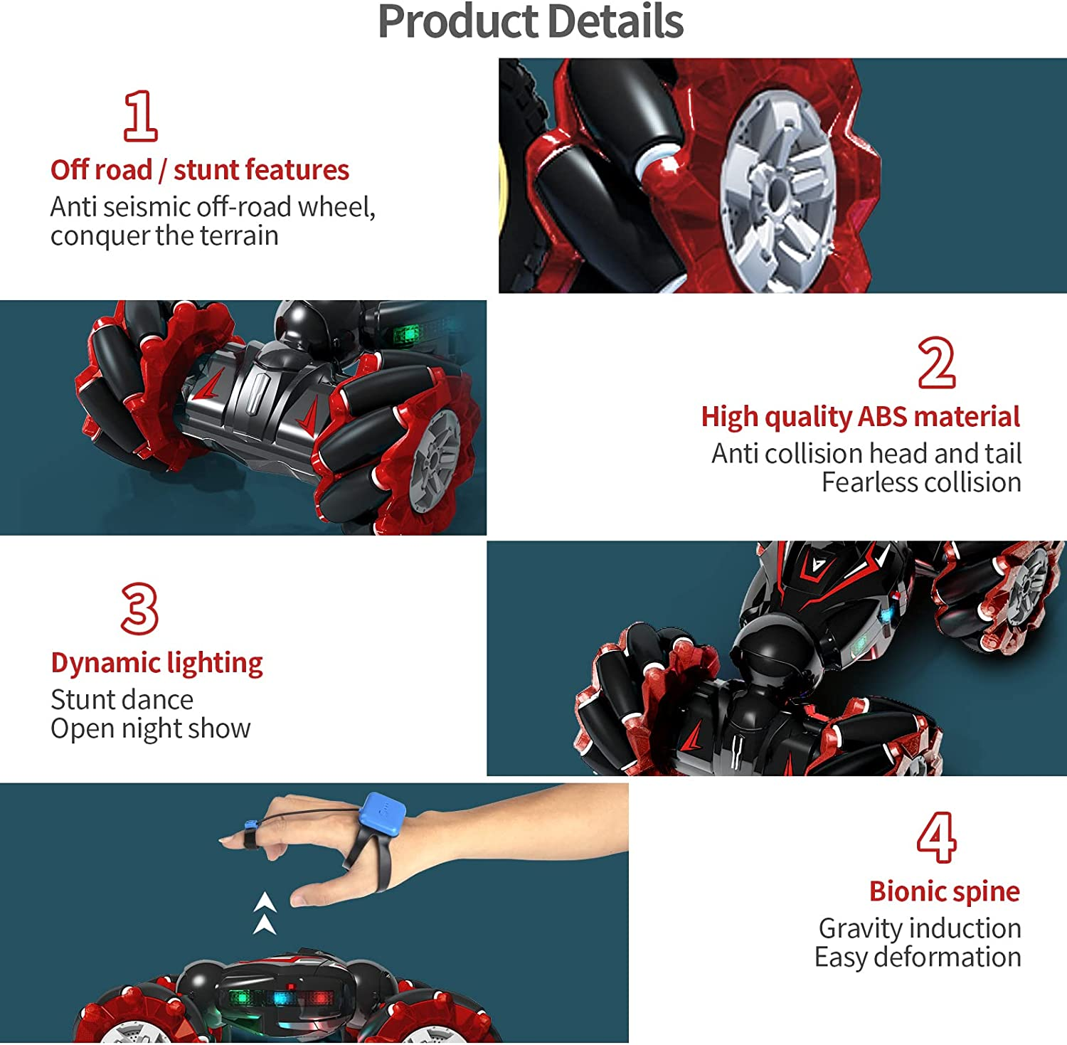 Deejoy Red RC Stunt Car, 2.4Ghz 4WD Remote Control Gesture Sensor Toy, Double Si