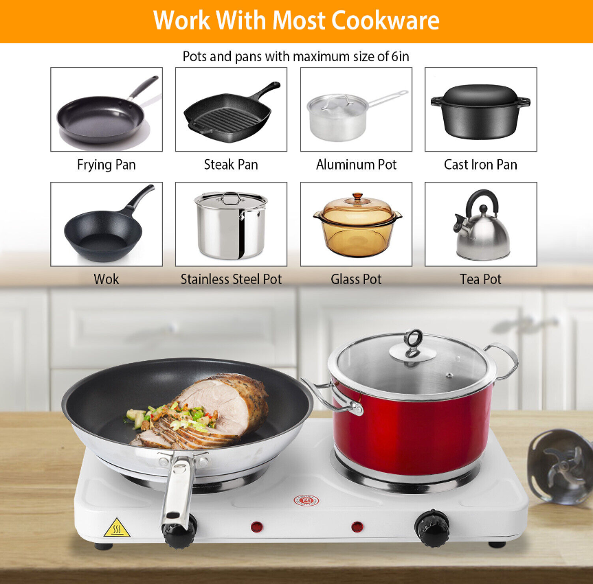 • Heat Quickly & Evenly:Equipped with double 6in burning plates and powered by 2000W of powerful power,it heats up quickly and cooks food evenly without any hot or cold spots.