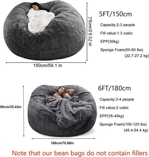 Microsuede 5FT 6FT Foam Giant Bean Bag Memory Living Room Chair Lazy Sofa Soft