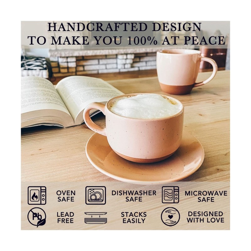 Mora Ceramics 8oz Cappuccino Mug Set of 4 - Ceramic Coffee Cups with Saucers ...