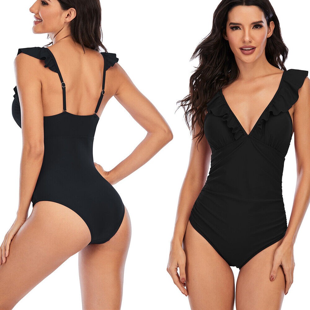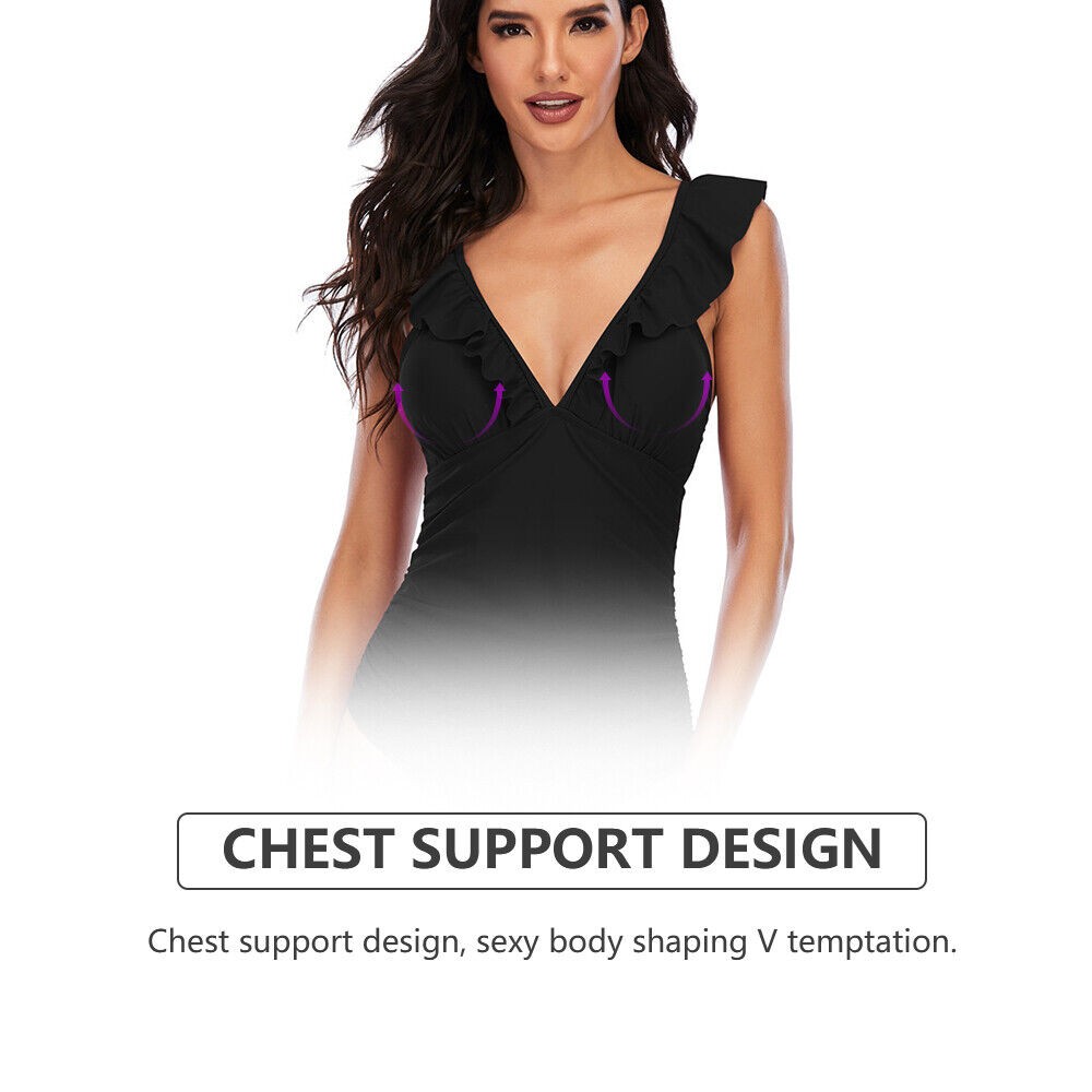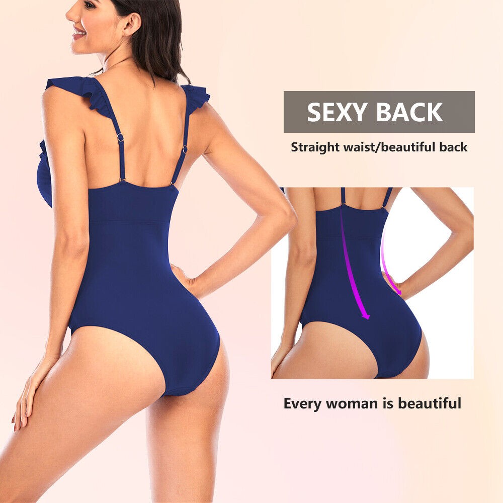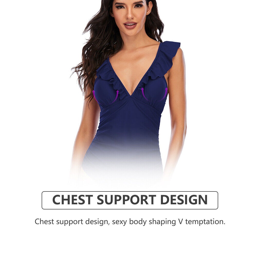Women One Piece Swimsuits Tummy Control Bathing Suit Ruffle V Neck Swimwear